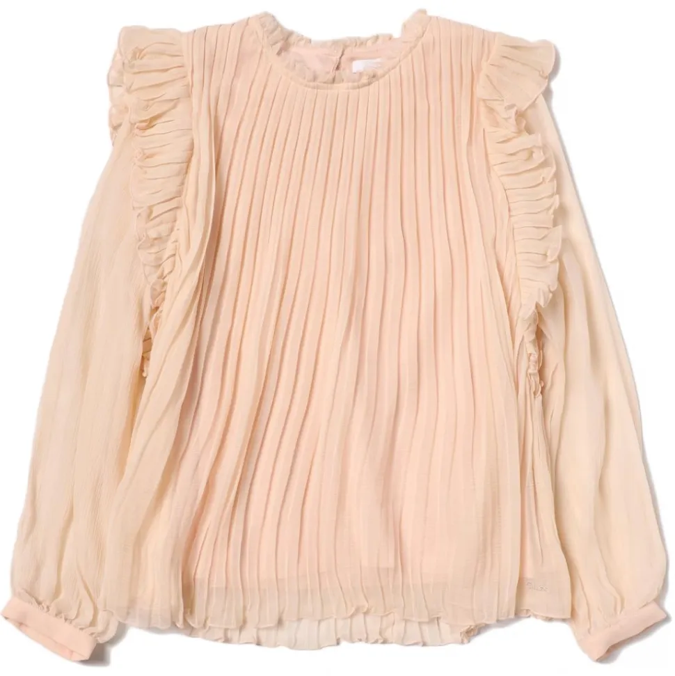 Chloè Kids Shirt Washed Pink. Pleated detail, ruffled details, crew neck. Back button fastening, long sleeves and straight hem.