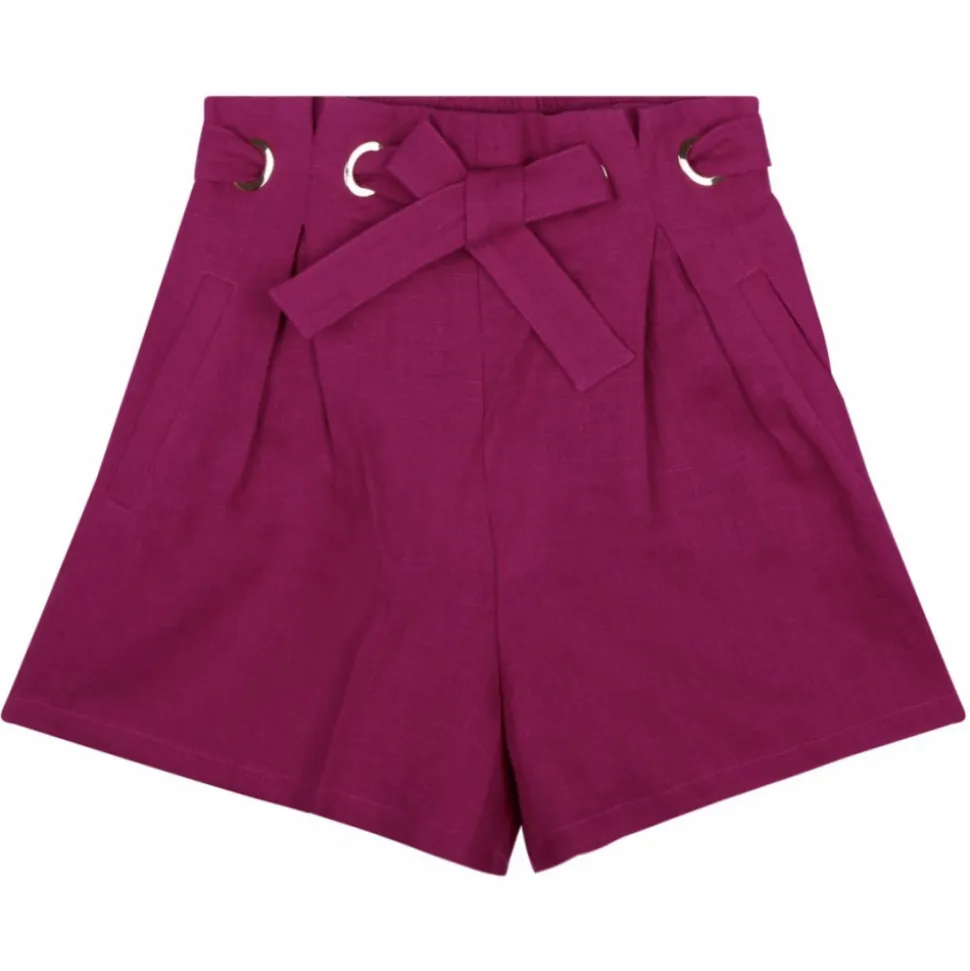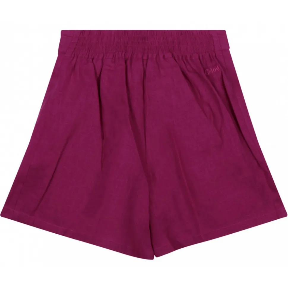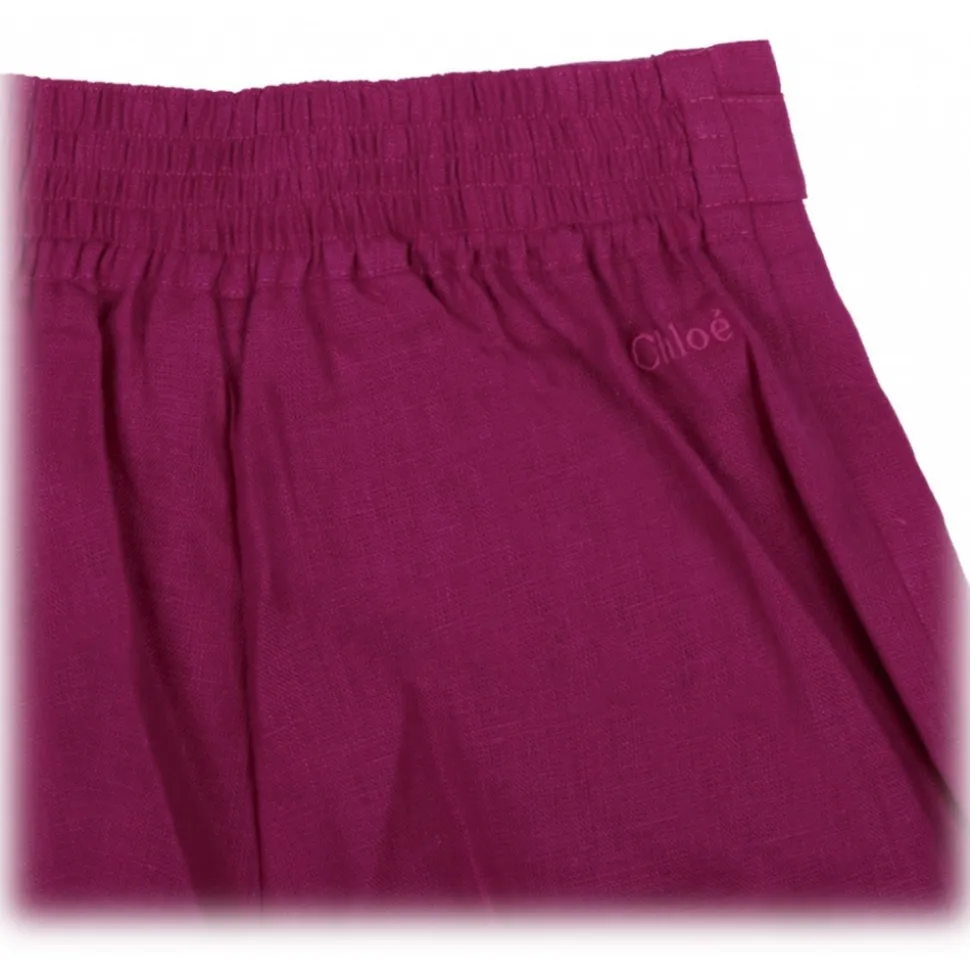 Chloé Pink Bow Shorts made of linen with pleated details. Elasticized waist and above-the-knee length