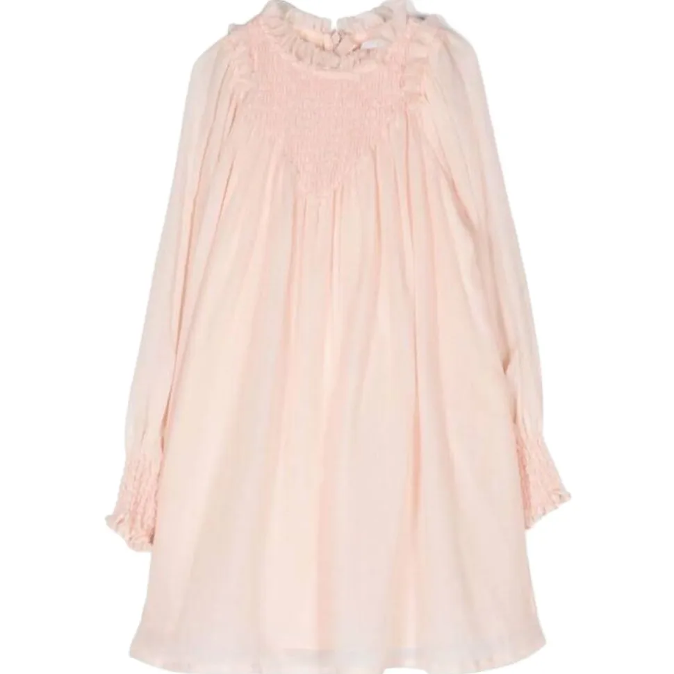 Chloé Kids Dress Washed Pink. Ruffled trim, stand-up collar, long puff sleeves. Elasticated cuffs, concealed rear zip fastening, flared hem.