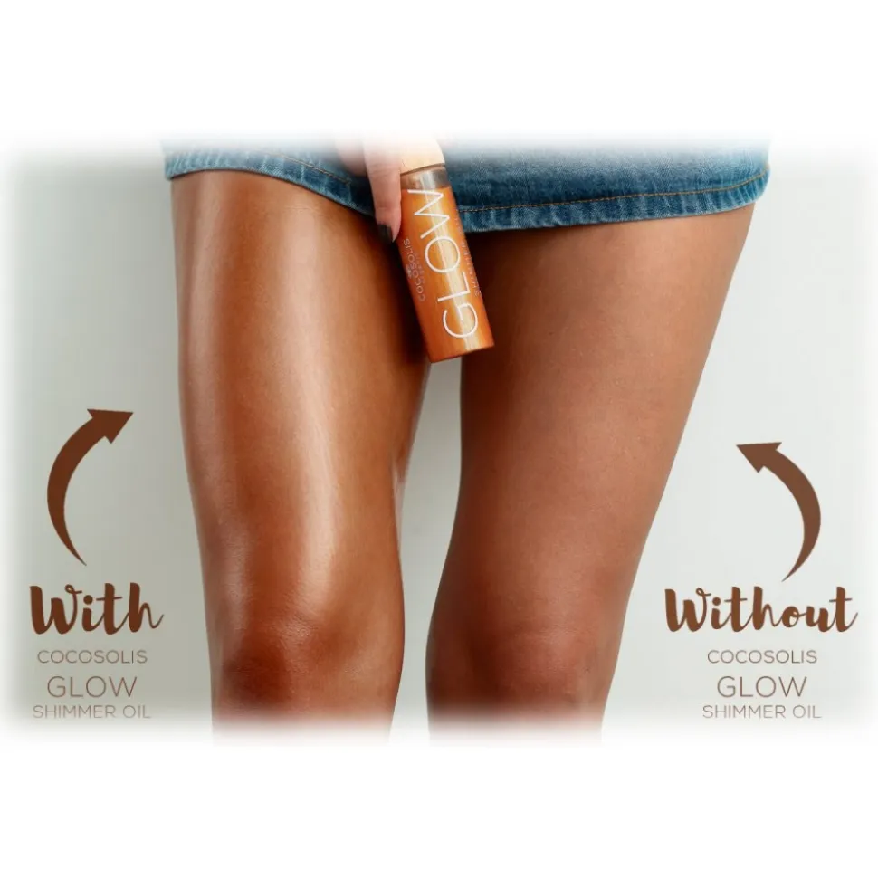 Cocosolis Glow Shimmer Oil contains a rich blend of organic oils, natural vitamin E and natural mica (fine natural mineral particles) which makes the skin truly glow!