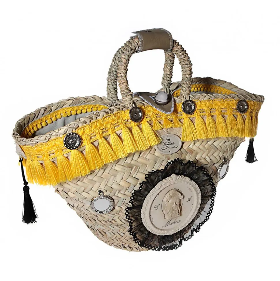 The Sicilian bag in origin “coffa” is an intertwining of leaves of the dwarf palm, brought by the Arabs and subsequently integrated into the Sicilian culture. They are the women of the Sicilian countries who pass on the tradition with ancient and valuable mastery.