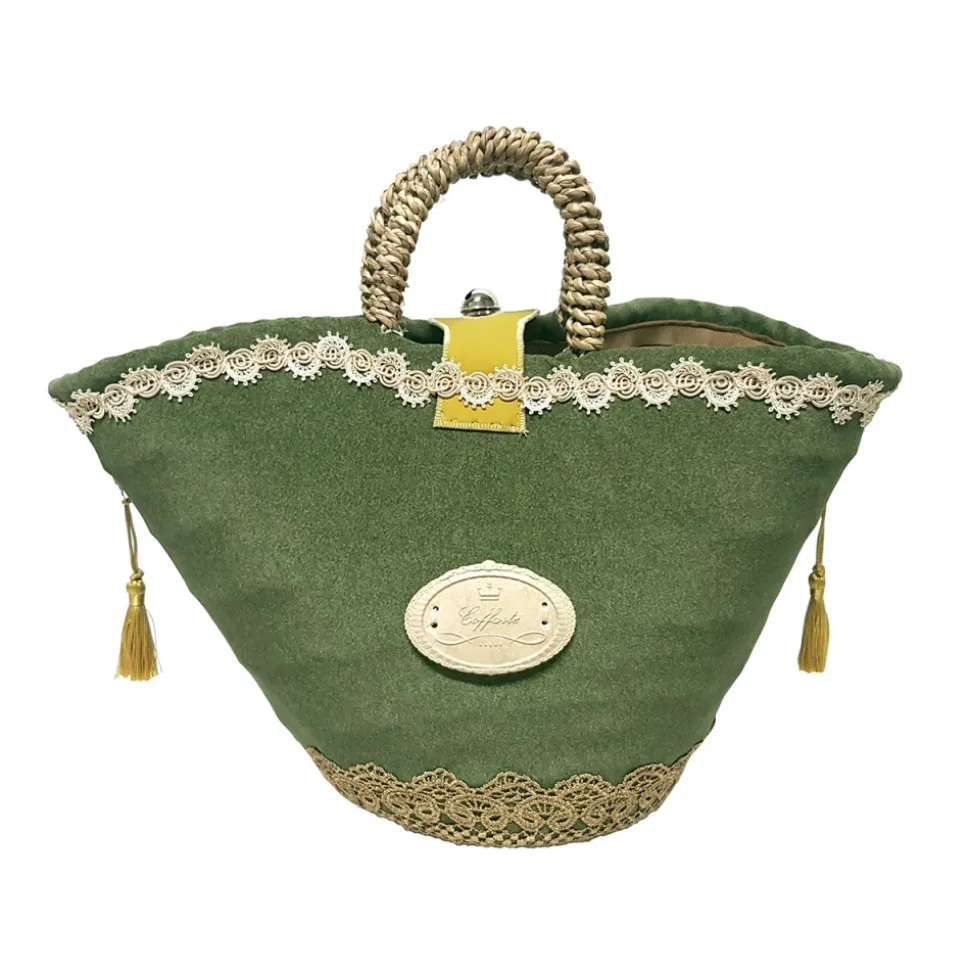 The Sicilian bag in origin “coffa” is an intertwining of leaves of the dwarf palm, brought by the Arabs and subsequently integrated into the Sicilian culture. They are the women of the Sicilian countries who pass on the tradition with ancient and valuable mastery.