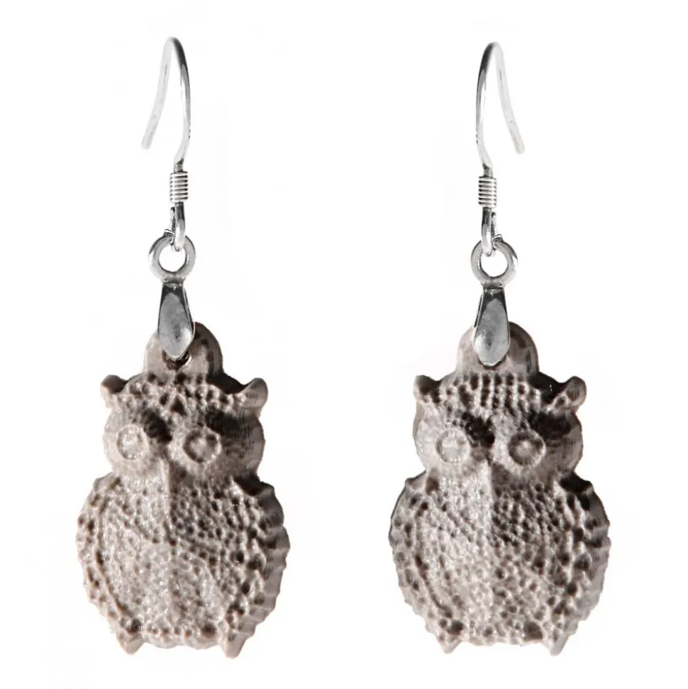 Handmade ceramic earrings handmade by skilled Sicilian craftsmen. Silver earrings Owls and engraved stone.