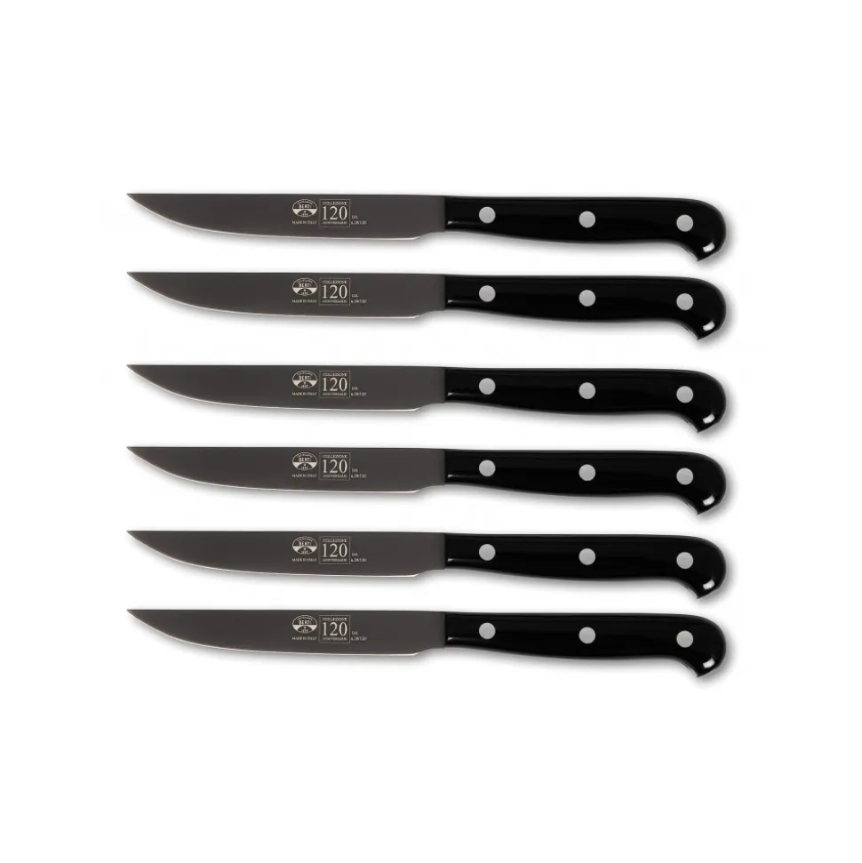 Exclusive Berti 1895 Cutlery Set. Table and kitchen set, plexiglass, laser cut blade. Whole tang, black.