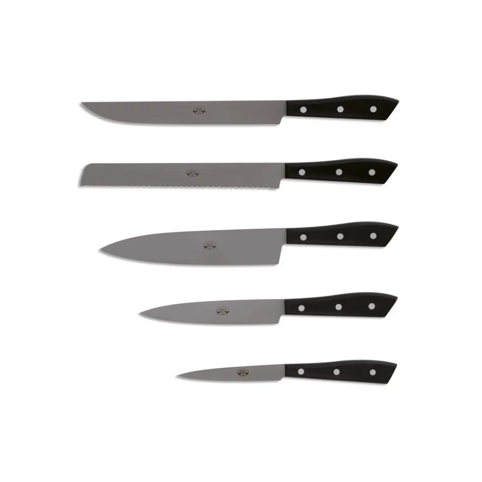 Exclusive Berti 1895 Knives set. 5 knife blocks, plexiglass, laser cut blade. Whole tang, black.