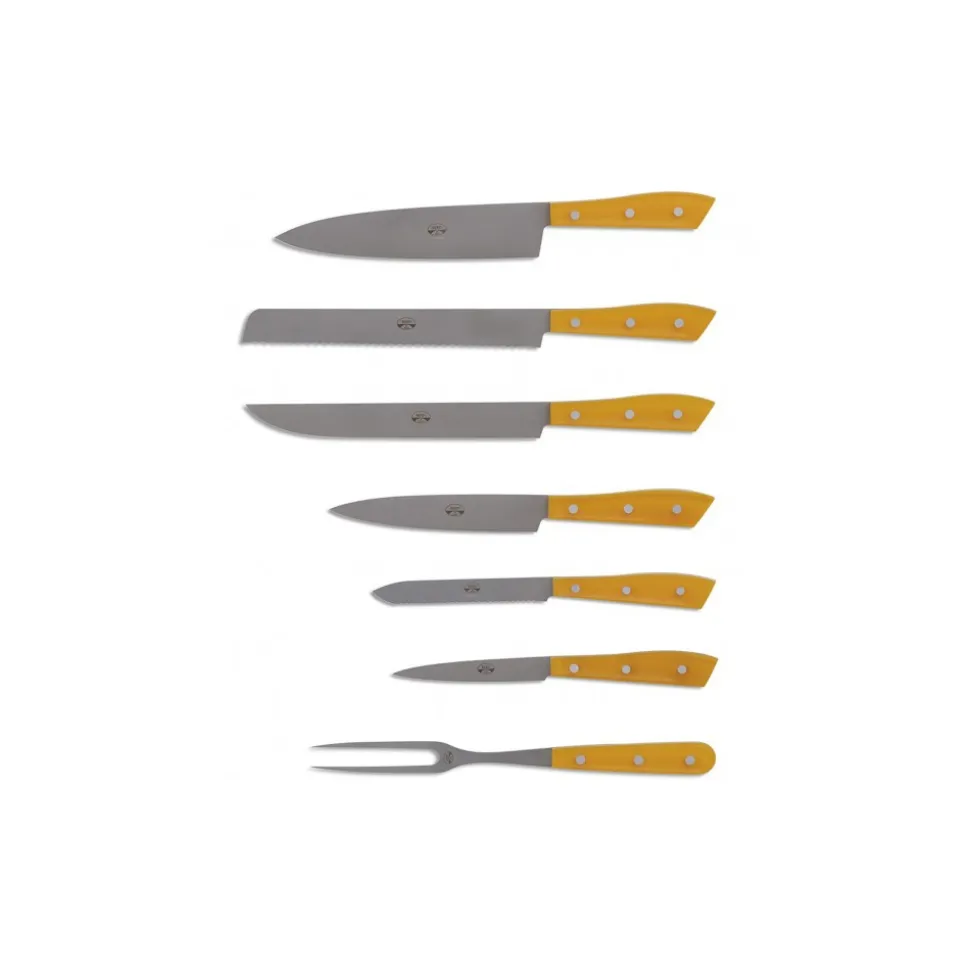 Exclusive Berti 1895 Knives set. 7 knife blocks, plexiglass, laser cut blade. Whole tang, amber.