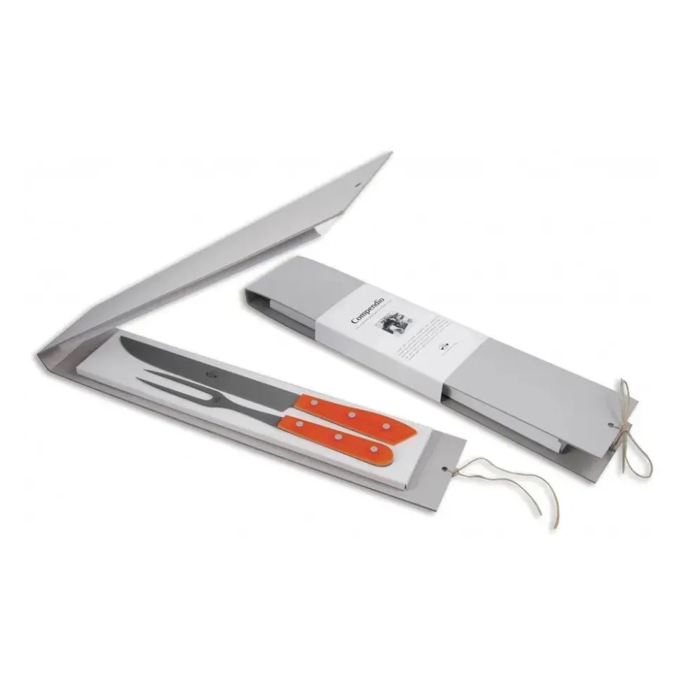 Exclusive Berti 1895 Cutlery Set. Roast set, plexiglass, laser cut blade. Whole tang, orange.