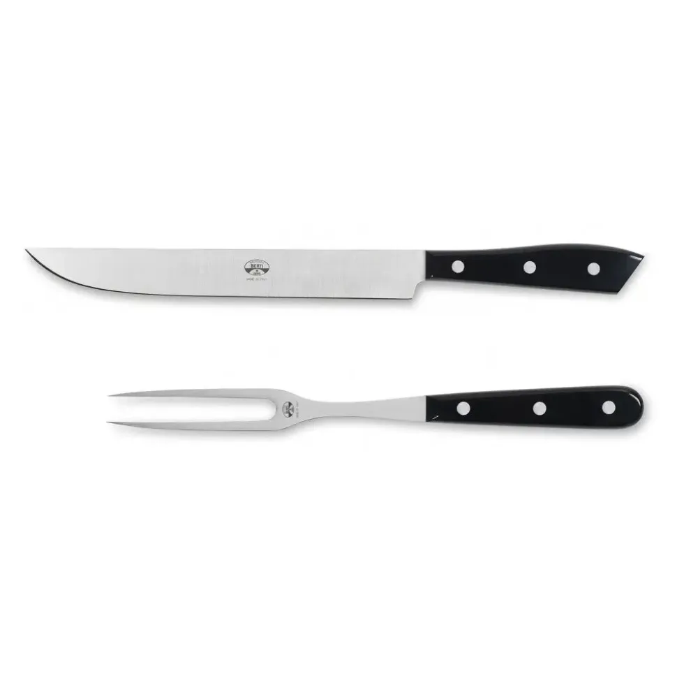 Exclusive Berti 1895 Cutlery Set. Roast set, plexiglass, laser cut blade. Whole tang, black.
