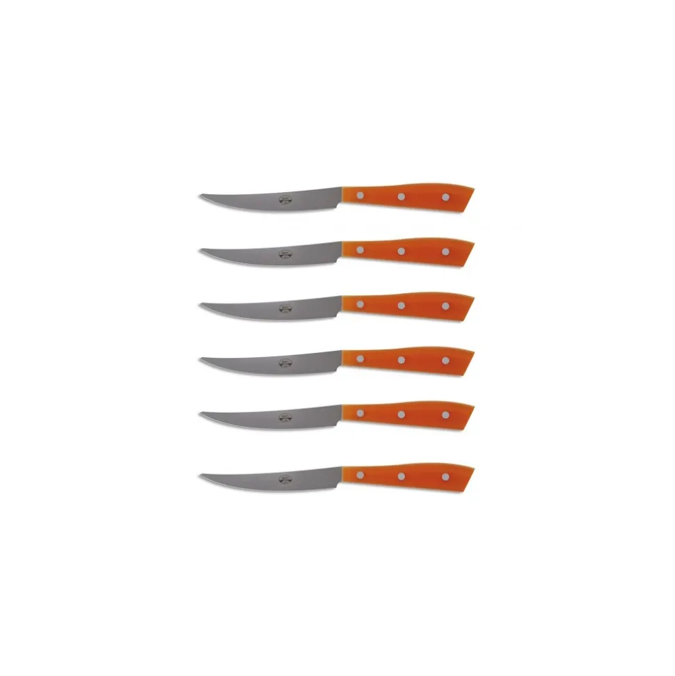 Exclusive Berti 1895 Cutlery set. Steak knives, plexiglass, laser cut blade. Whole tang, orange.