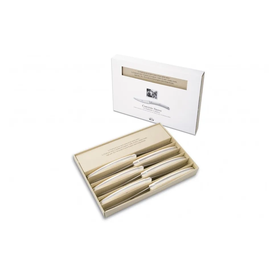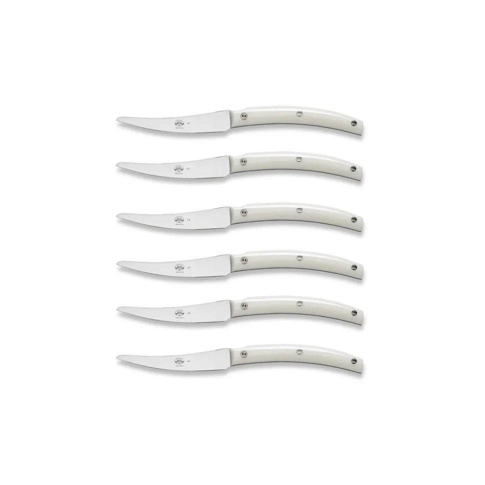 Exclusive Berti 1895 Cutlery set. Steak knives, plexiglass, laser cut blade. Whole tang, ivory.