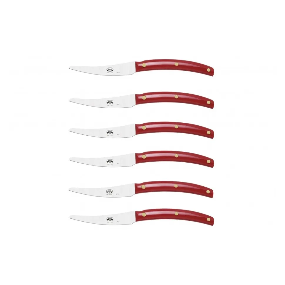 Exclusive Berti 1895 Cutlery set. Steak knives, plexiglass, laser cut blade. Whole tang, red.