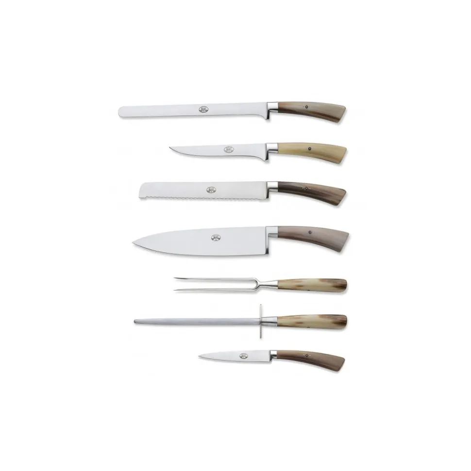 Exclusive Berti 1895 Cutlery Set. Service set, ox horn, forged blade. Full handle, horn.