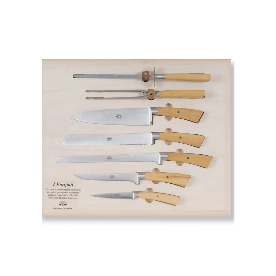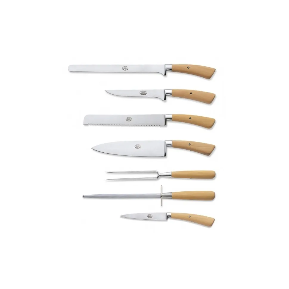 Exclusive Berti 1895 Cutlery Set. Service set, boxwood, forged blade. Full handle, cream.