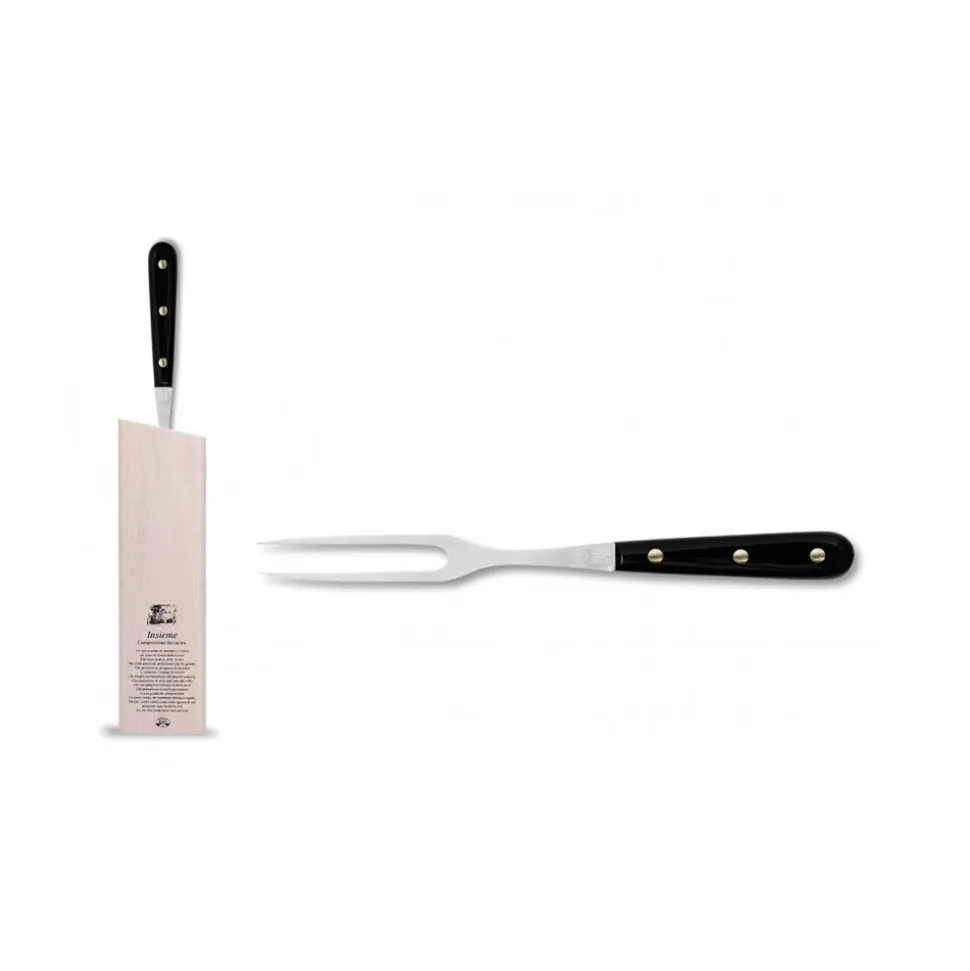 Exclusive set Coltellerie Berti 1895. Roasted and boiled meat forks, plexiglass, laser cut blade. Whole tang, black.
