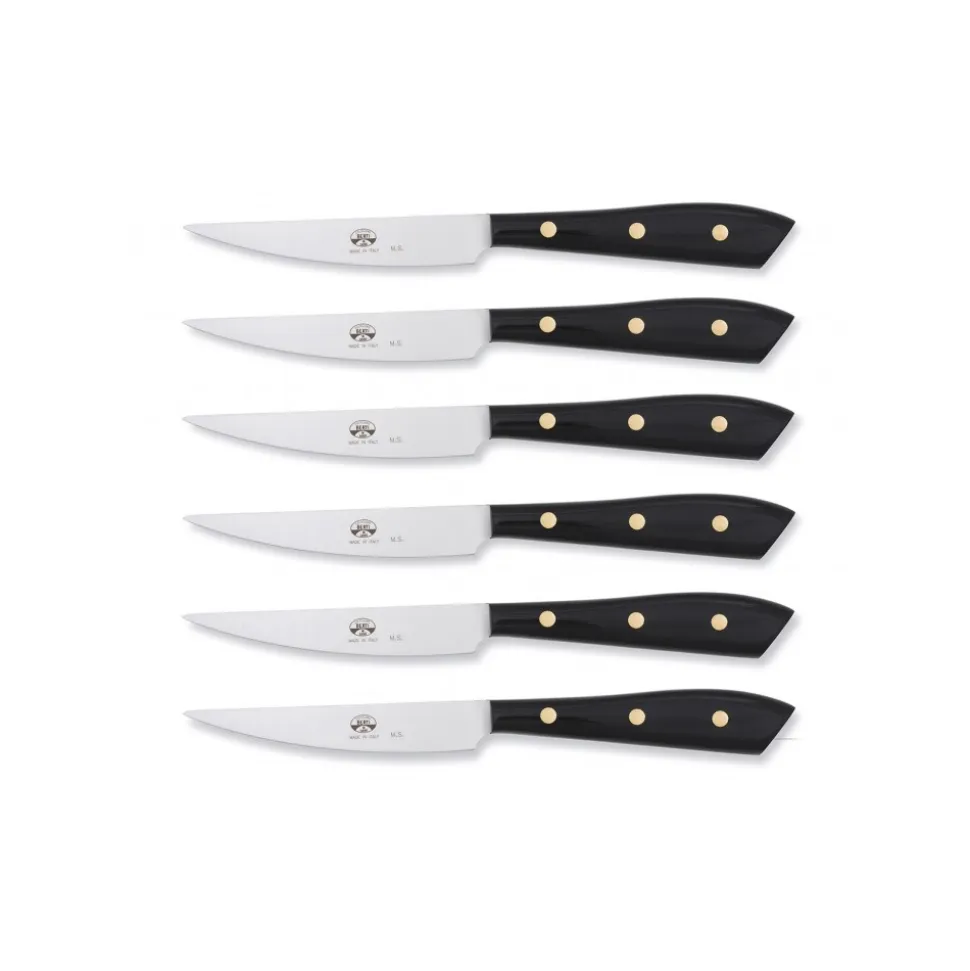 Exclusive Berti 1895 Cutlery set. Steak knives, plexiglass, laser cut blade. Whole tang, black.