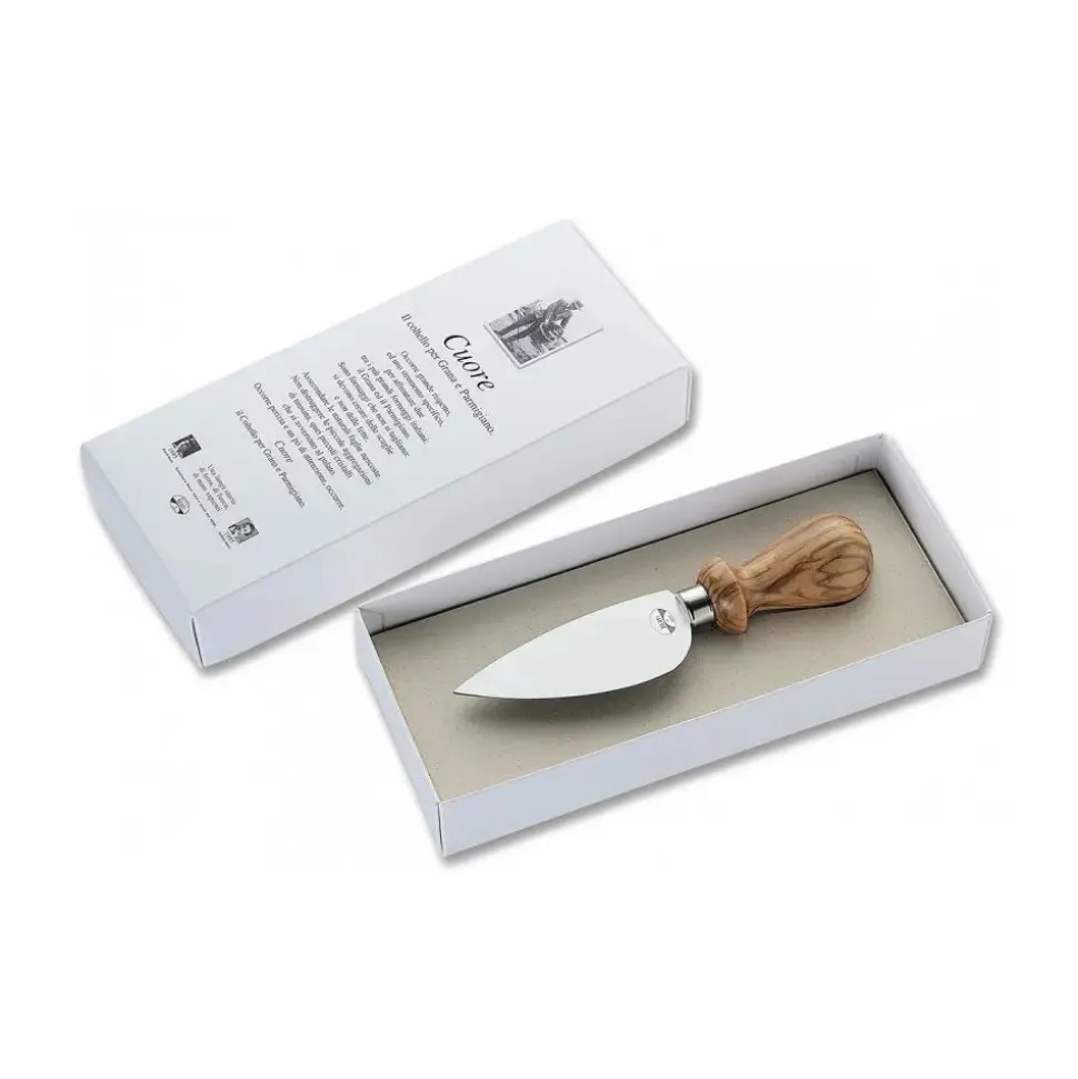 Exclusive set Coltellerie Berti 1895. Cheese knives, olive wood, laser cut blade. Half tang, brown-veined hazelnut.