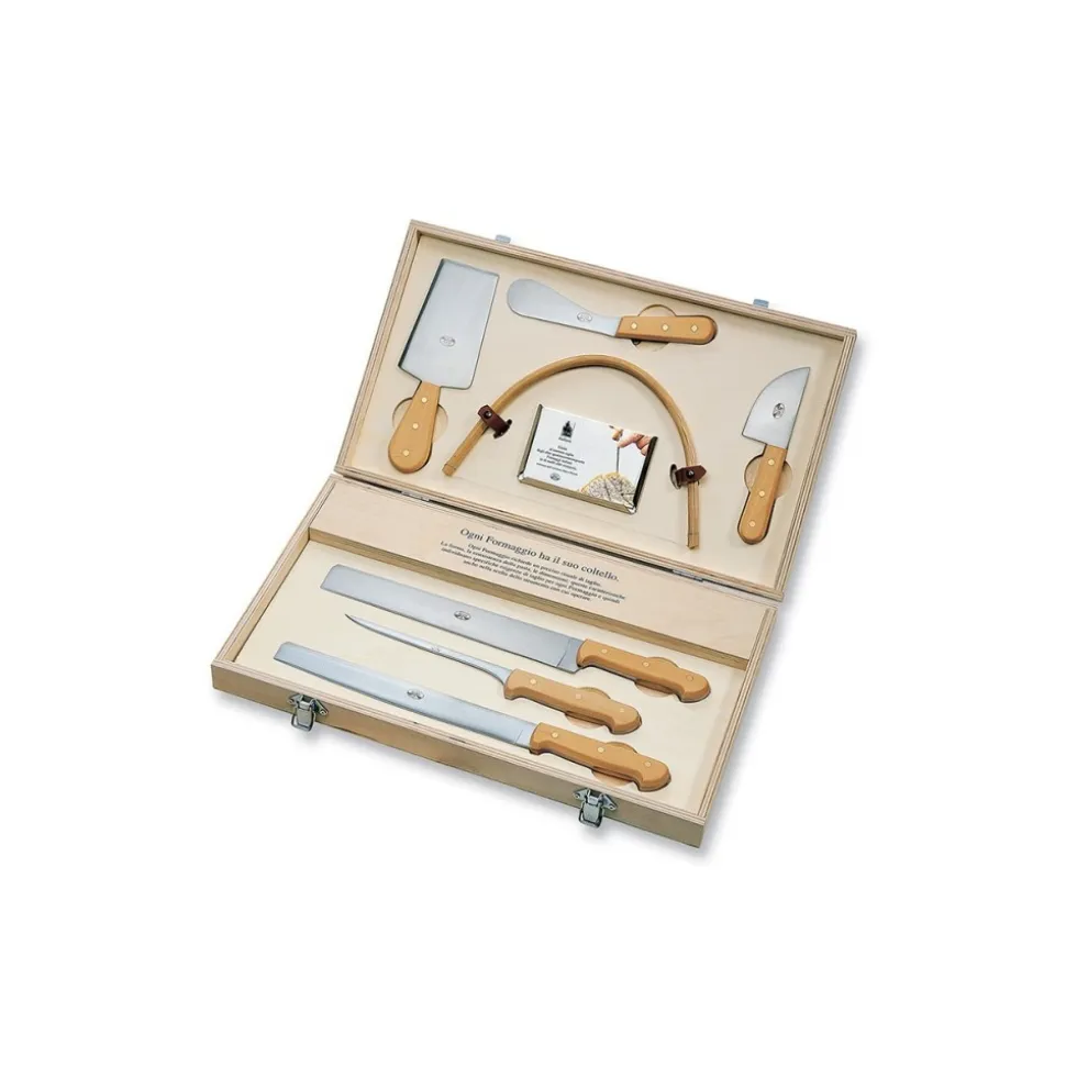 Exclusive set Coltellerie Berti 1895. Cheese knives, boxwood, laser cut blade. Whole tang, cream.
