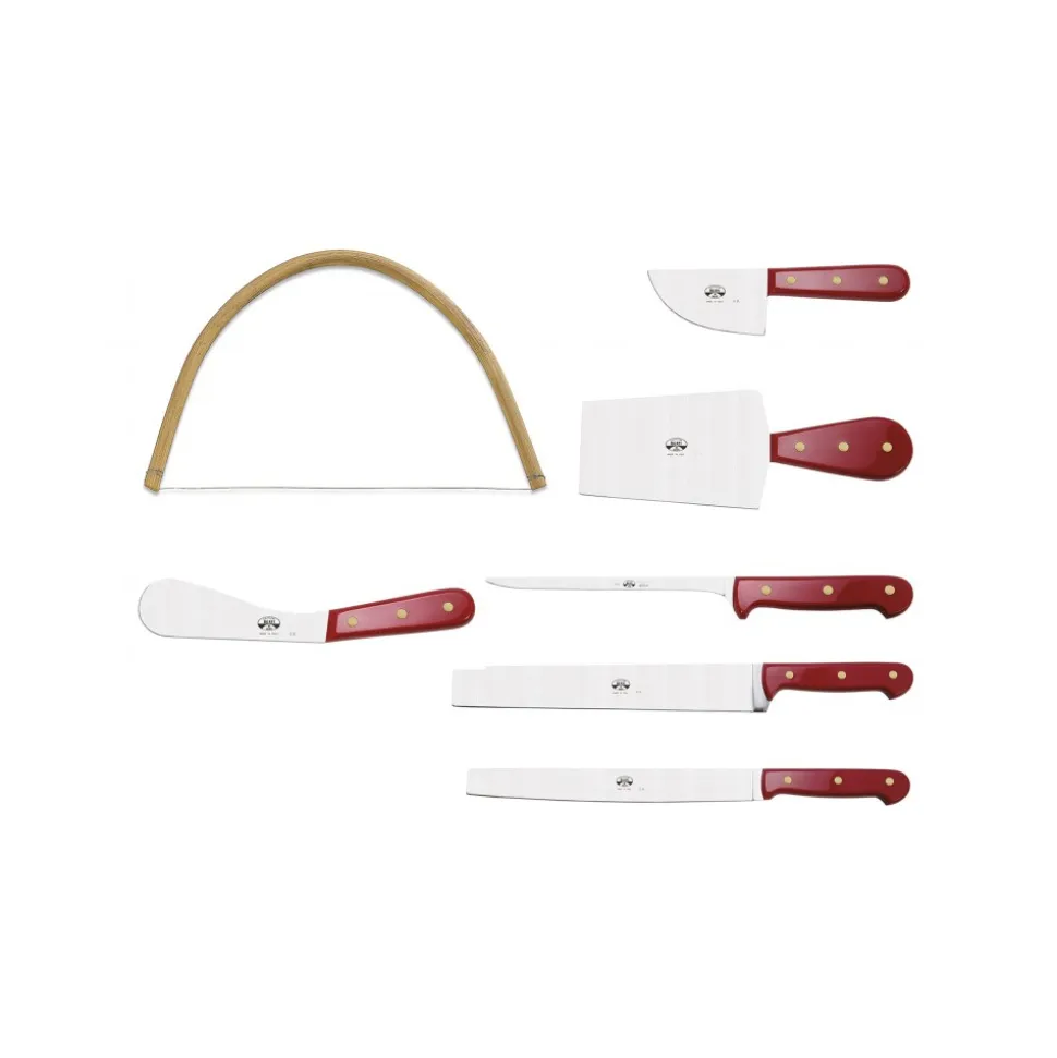 Exclusive Berti 1895 Cutlery Set. Cheese knives, plexiglass, laser cut blade. Whole tang, red.