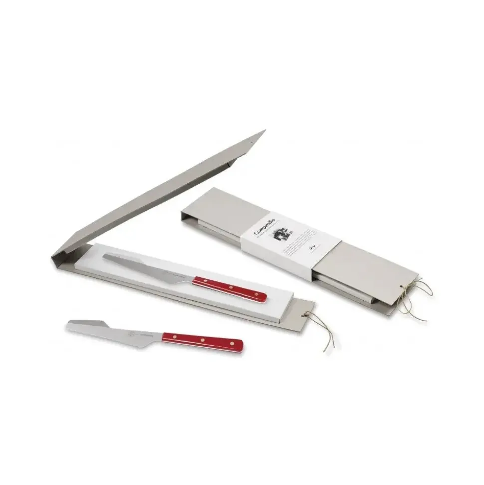 Exclusive Berti 1895 Knives set. Knives for cutting and spreading, plexiglass, laser cut blade. Whole tang, red.