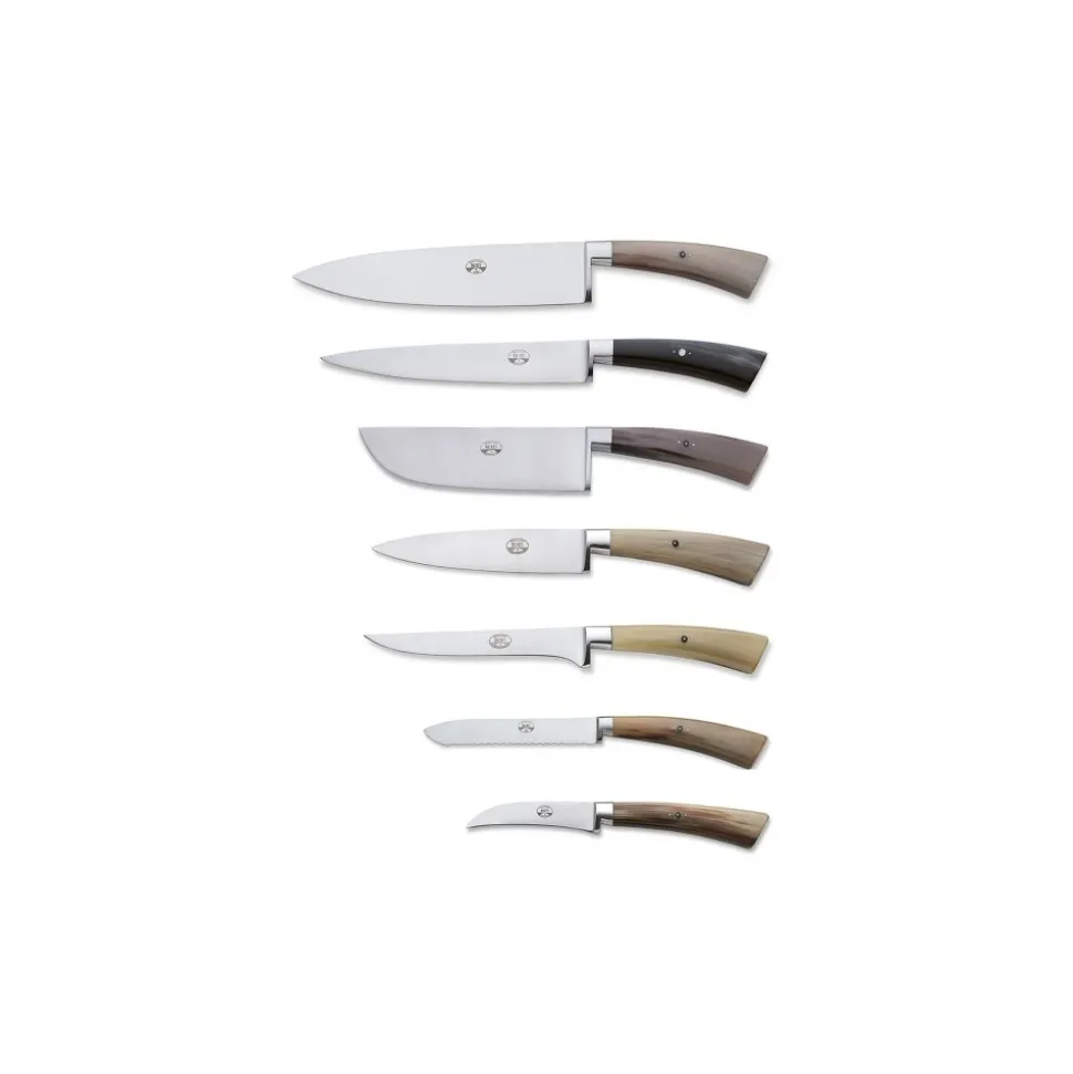 Exclusive Berti 1895 Cutlery Set. Preparation set, ox horn, forged blade. Full handle, horn.