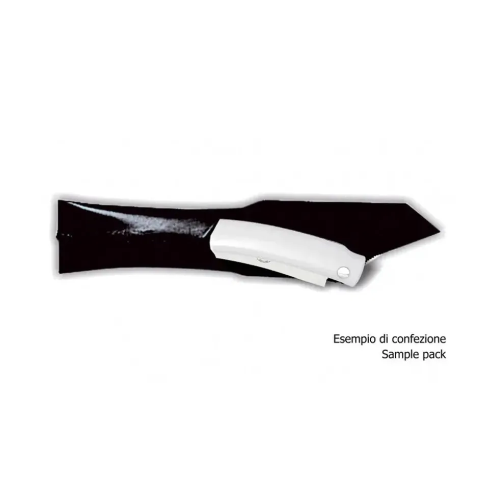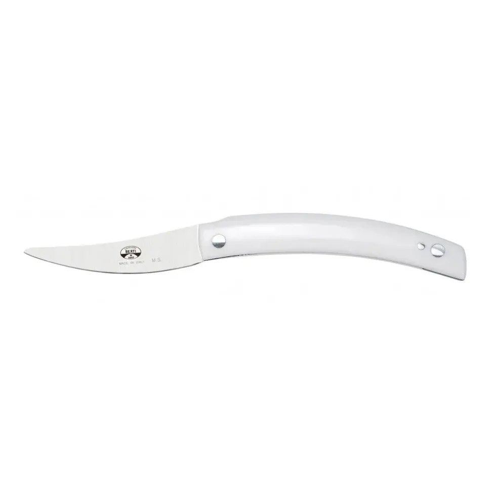 Exclusive Berti 1895 cutlery set. Regional knives, corian, laser cut blade. Handle with plates, white.