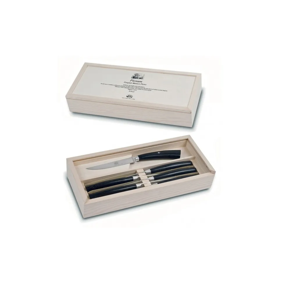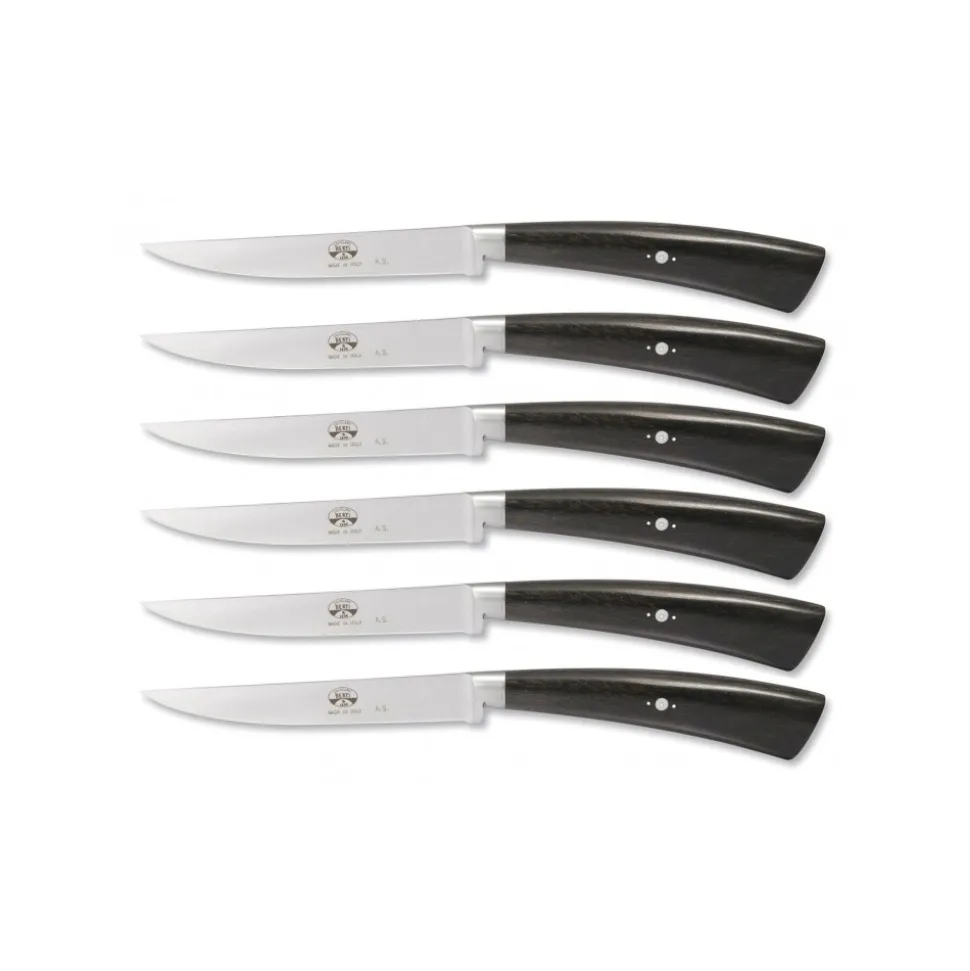 Exclusive Berti 1895 Cutlery set. Steak knives, ebony, forged blade. Whole tang, black.