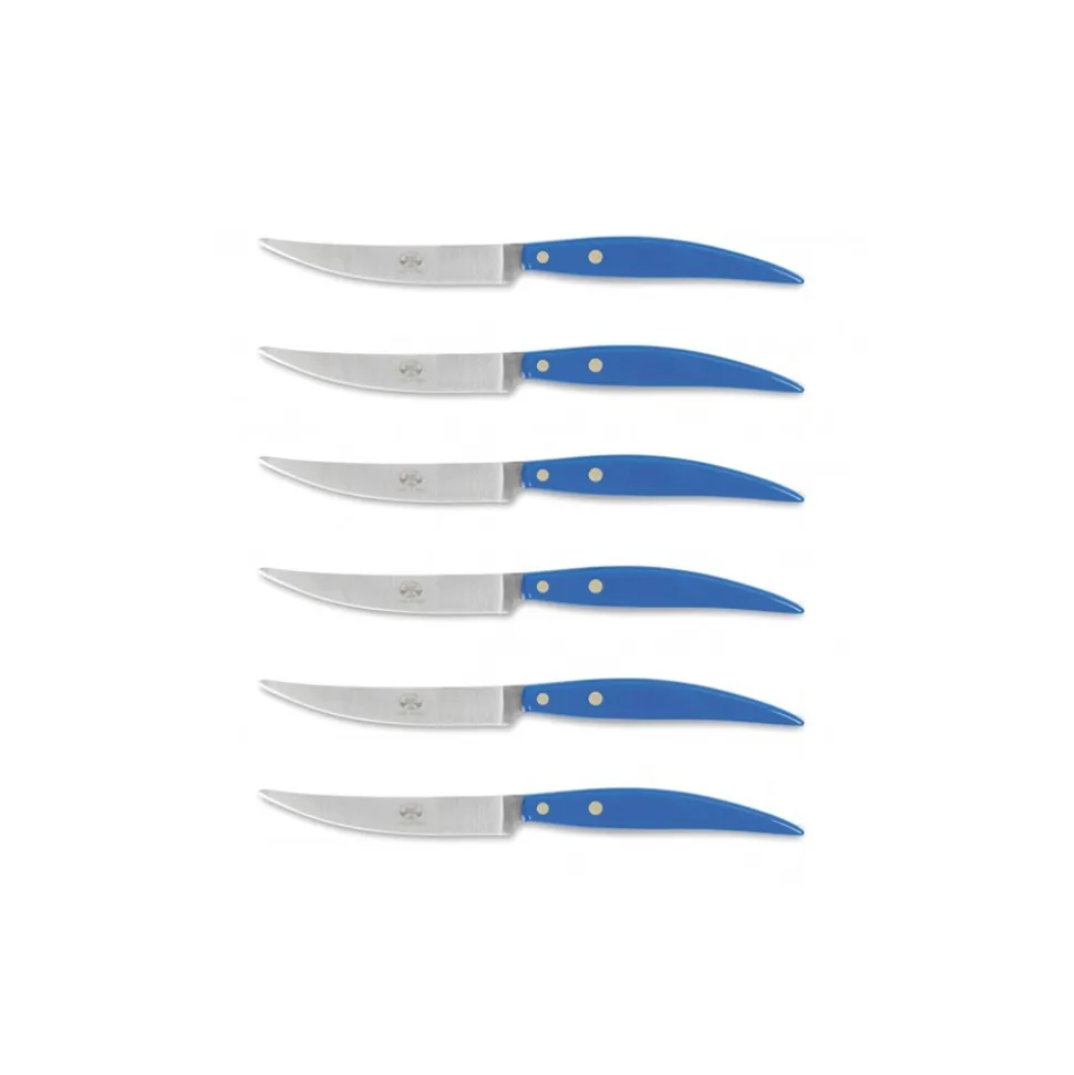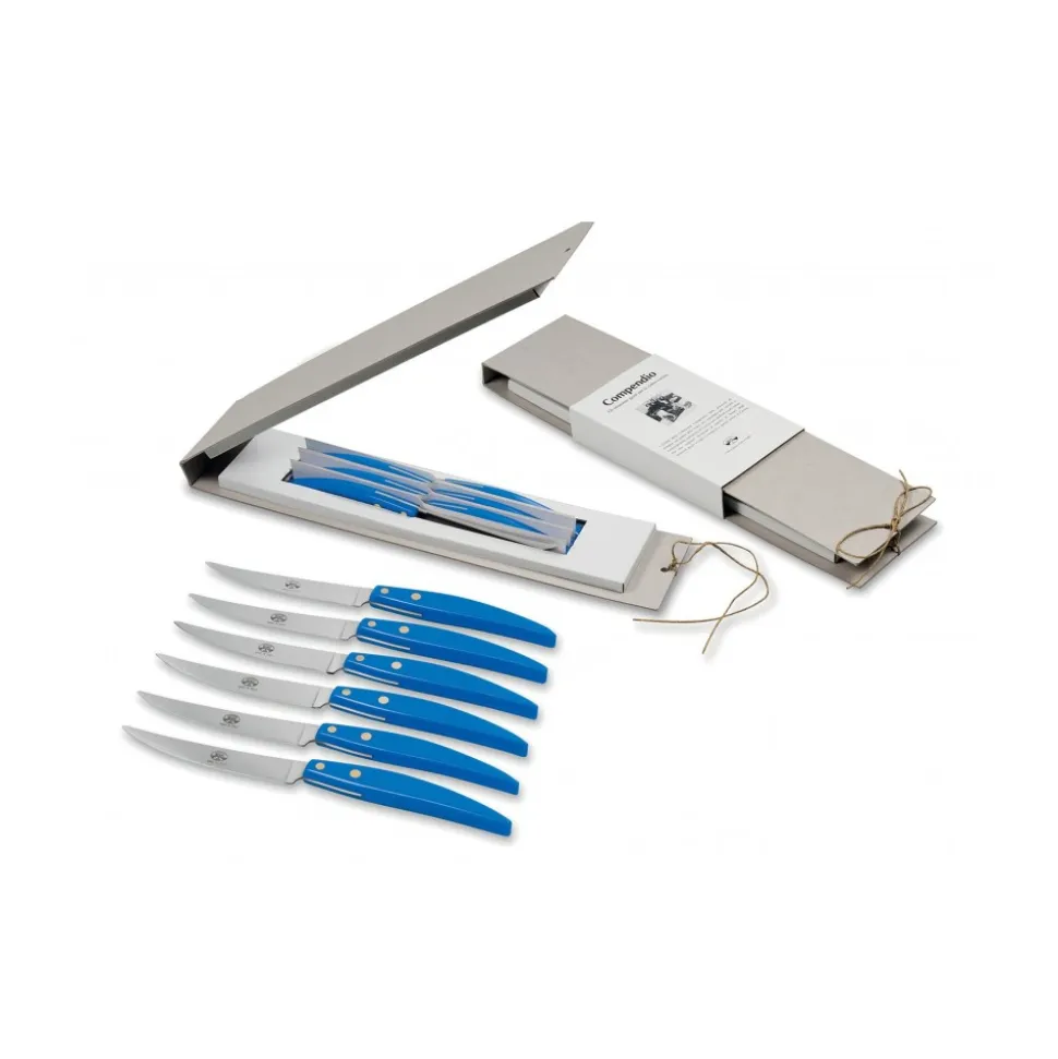 Exclusive Berti 1895 Cutlery set. Steak knives, plexiglass, laser cut blade. Half tang, light blue.