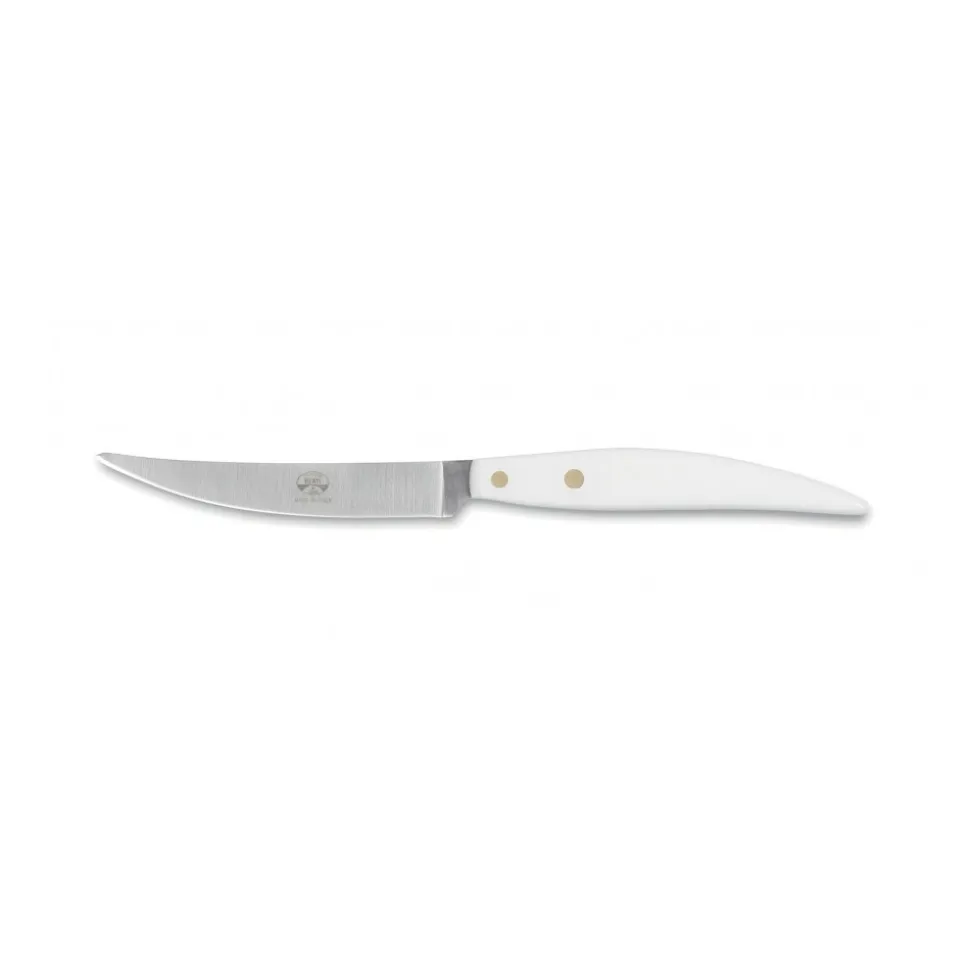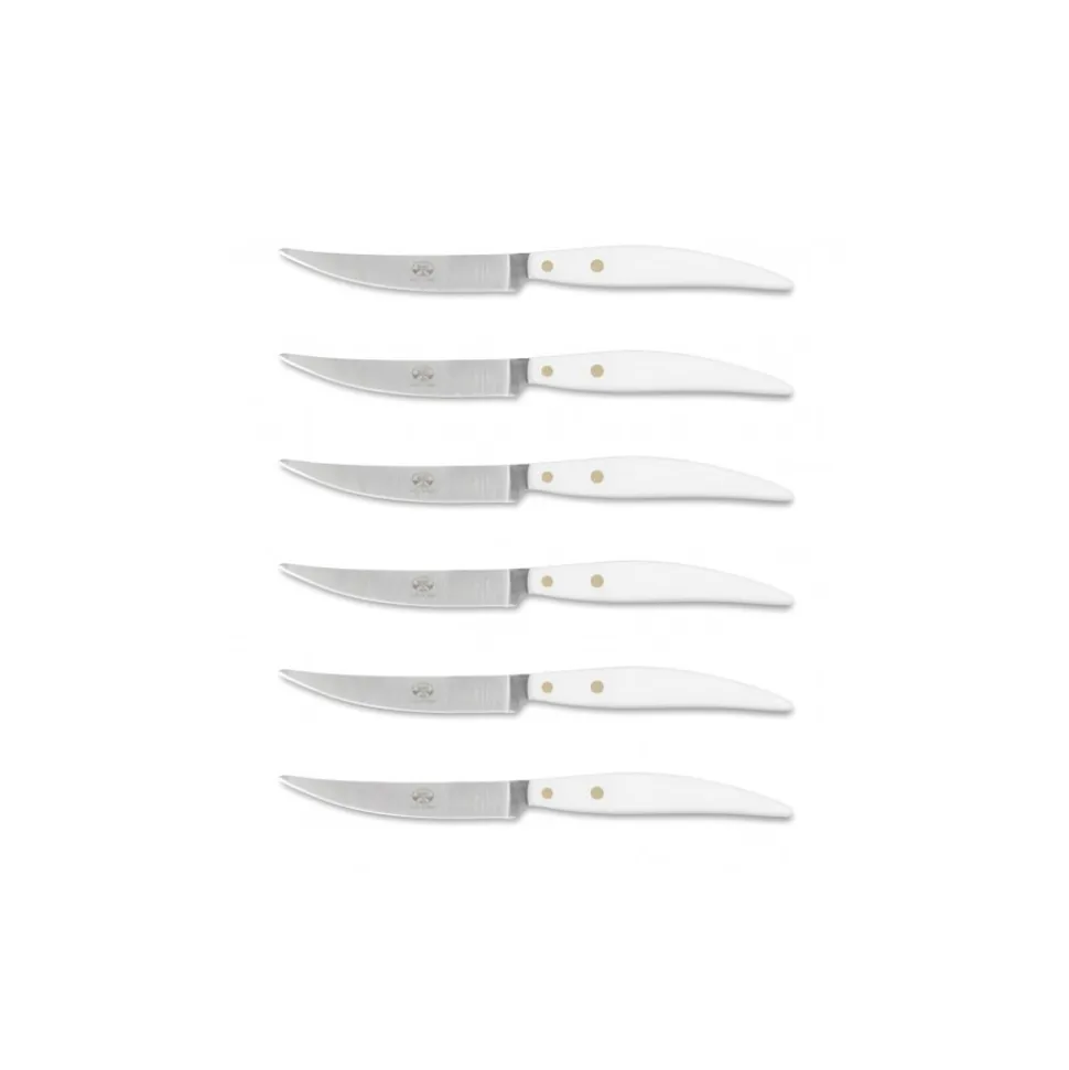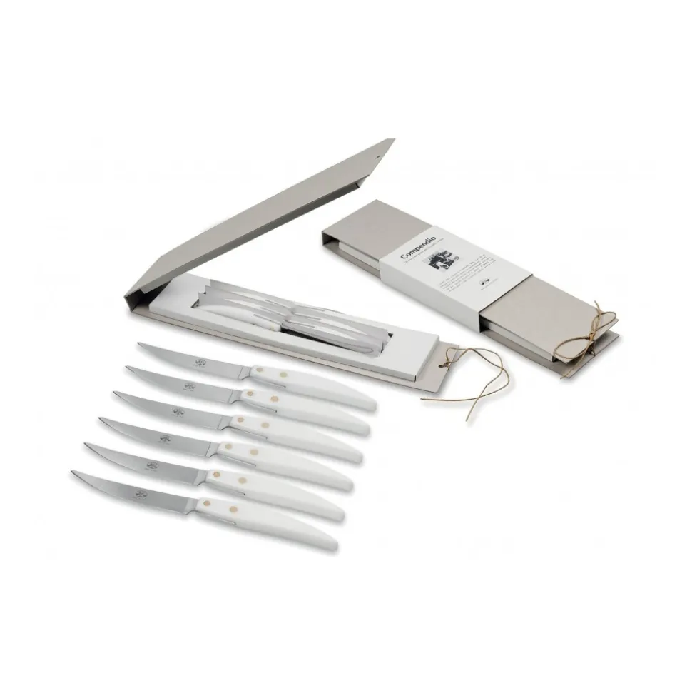 Exclusive Berti 1895 Cutlery set. Steak knives, plexiglass, laser cut blade. Half tang, white.