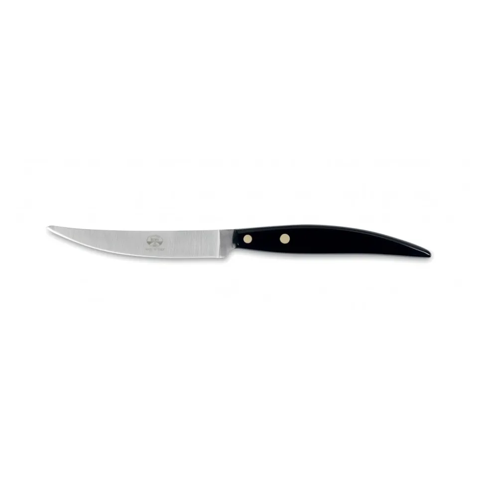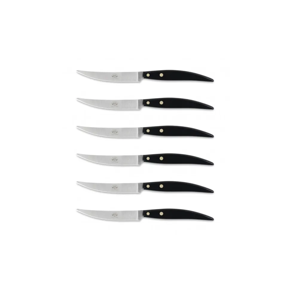 Exclusive Berti 1895 Cutlery set. Steak knives, plexiglass, laser cut blade. Half tang, dark grey.