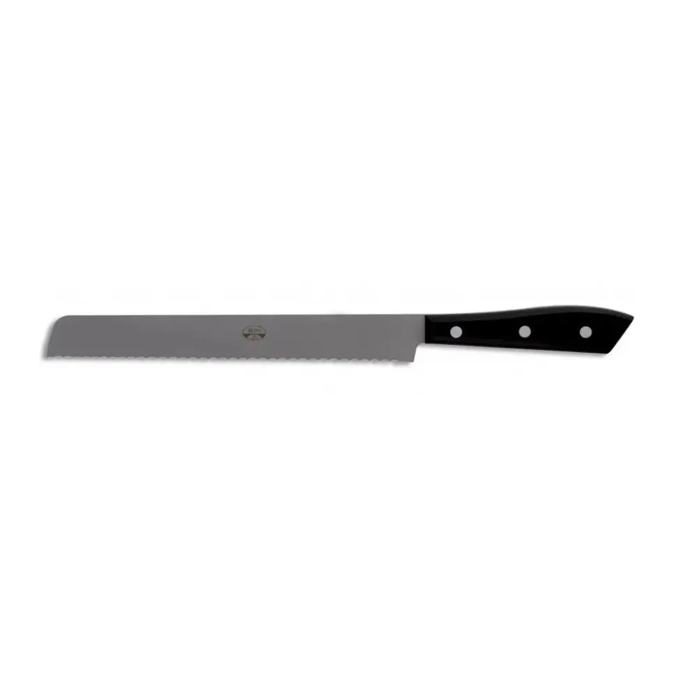 Exclusive Berti 1895 cutlery set. Bread knives, plexiglass, laser cut blade. Whole tang, black.