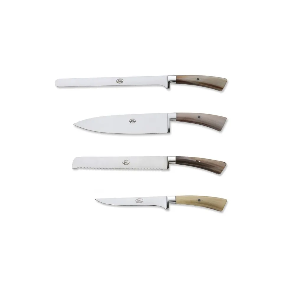 Exclusive Berti 1895 Cutlery Set. Preparation set, ox horn, forged blade. Full handle, horn.