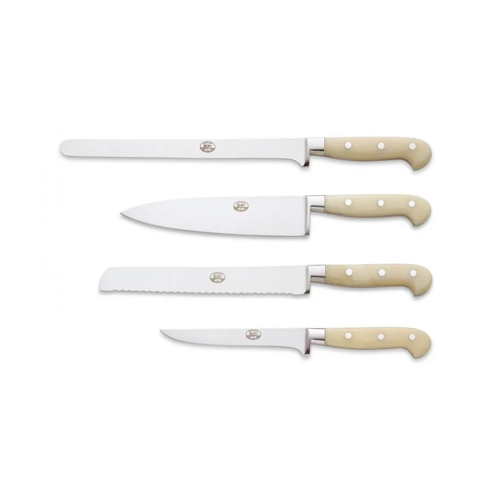 Exclusive Berti 1895 Knives set. Preparation set, plexiglass, forged blade. Whole tang, cream.