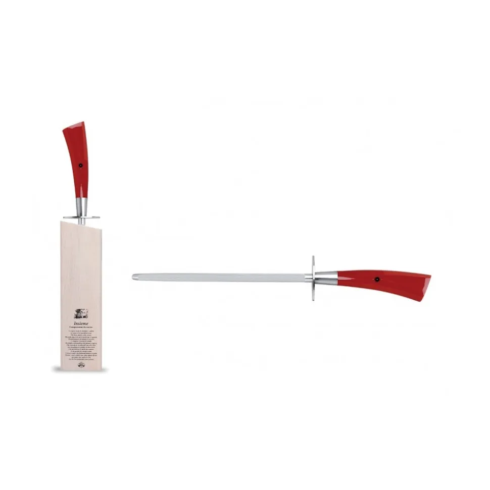 Exclusive Berti 1895 Knives set. Sharpener for knife maintenance, plexiglass, forged blade. Full handle, red.