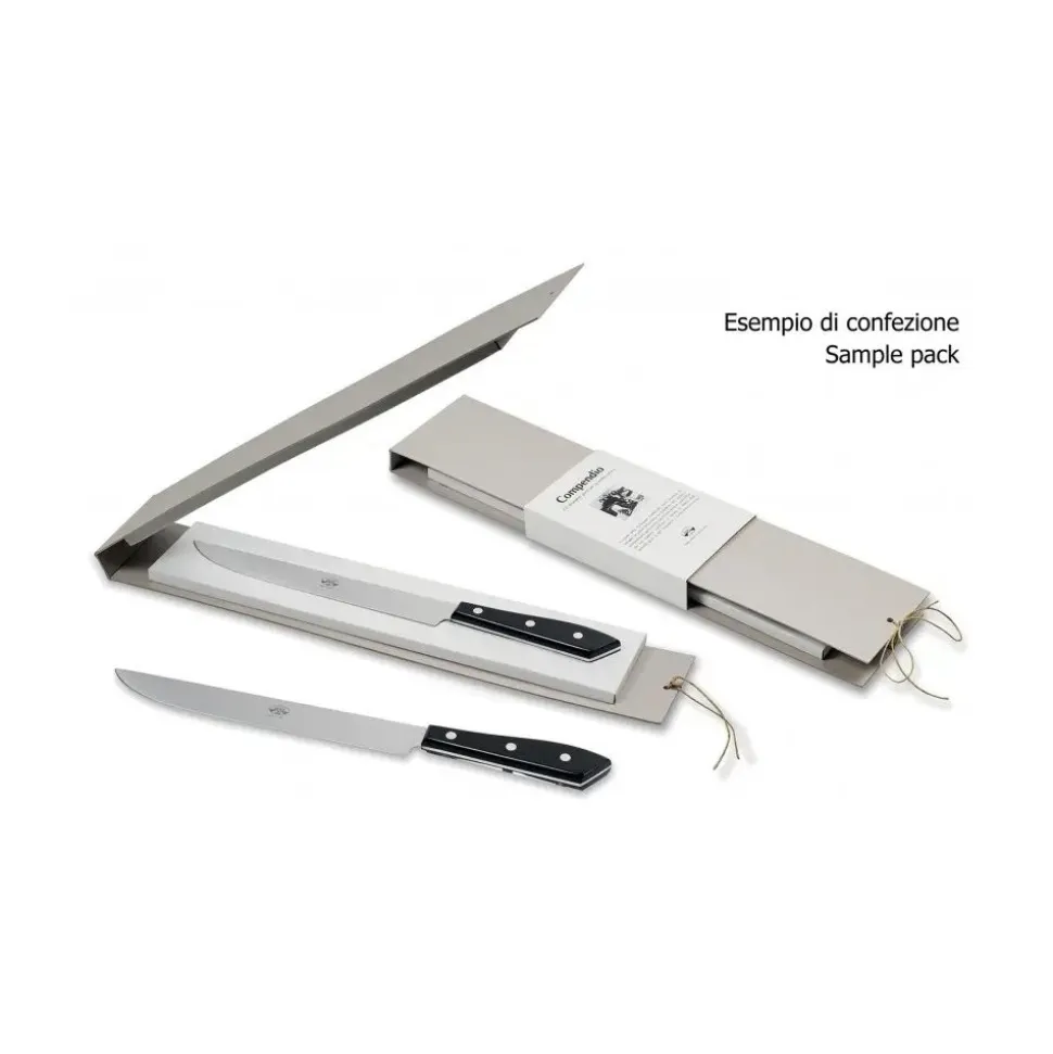 Exclusive Berti 1895 cutlery set. Raw and cooked meat knives, plexiglass, laser cut blade. Whole tang, black.