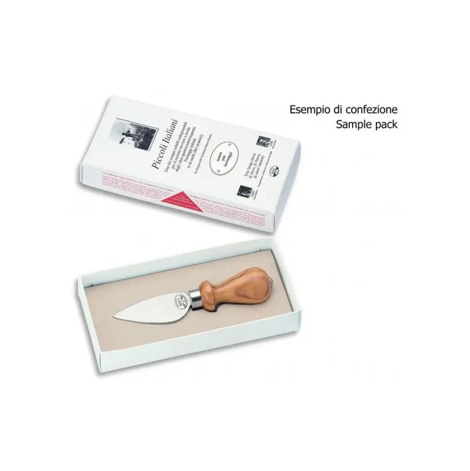 Exclusive set Coltellerie Berti 1895. Cheese knives, olive wood, laser cut blade. Half tang, brown-veined hazelnut.