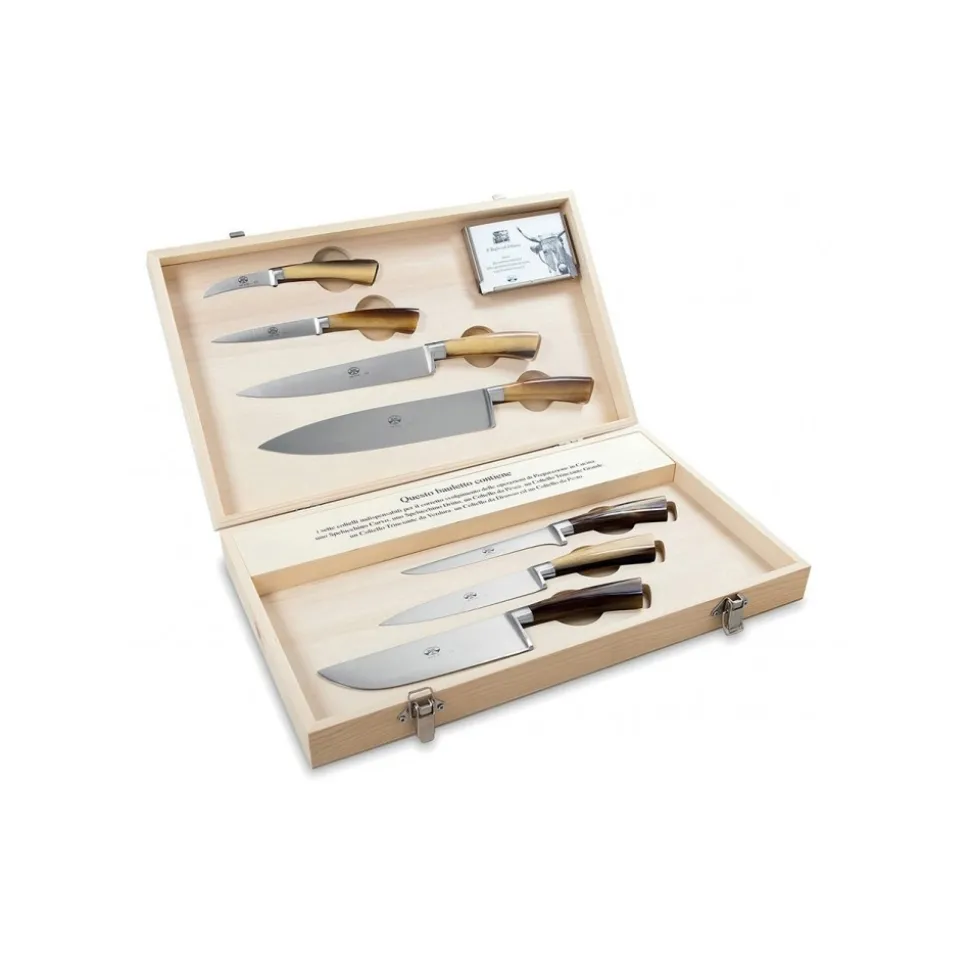 Exclusive Berti 1895 cutlery set. Preparation set, cornotech, forged blade. Full handle, horn-like.
