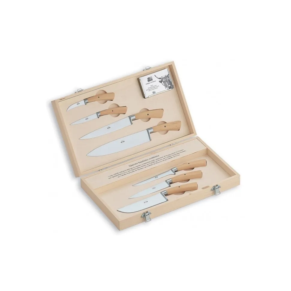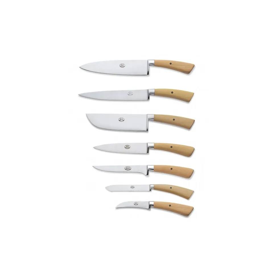 Exclusive Berti 1895 Cutlery Set. Preparation set, boxwood, forged blade. Full handle, cream.