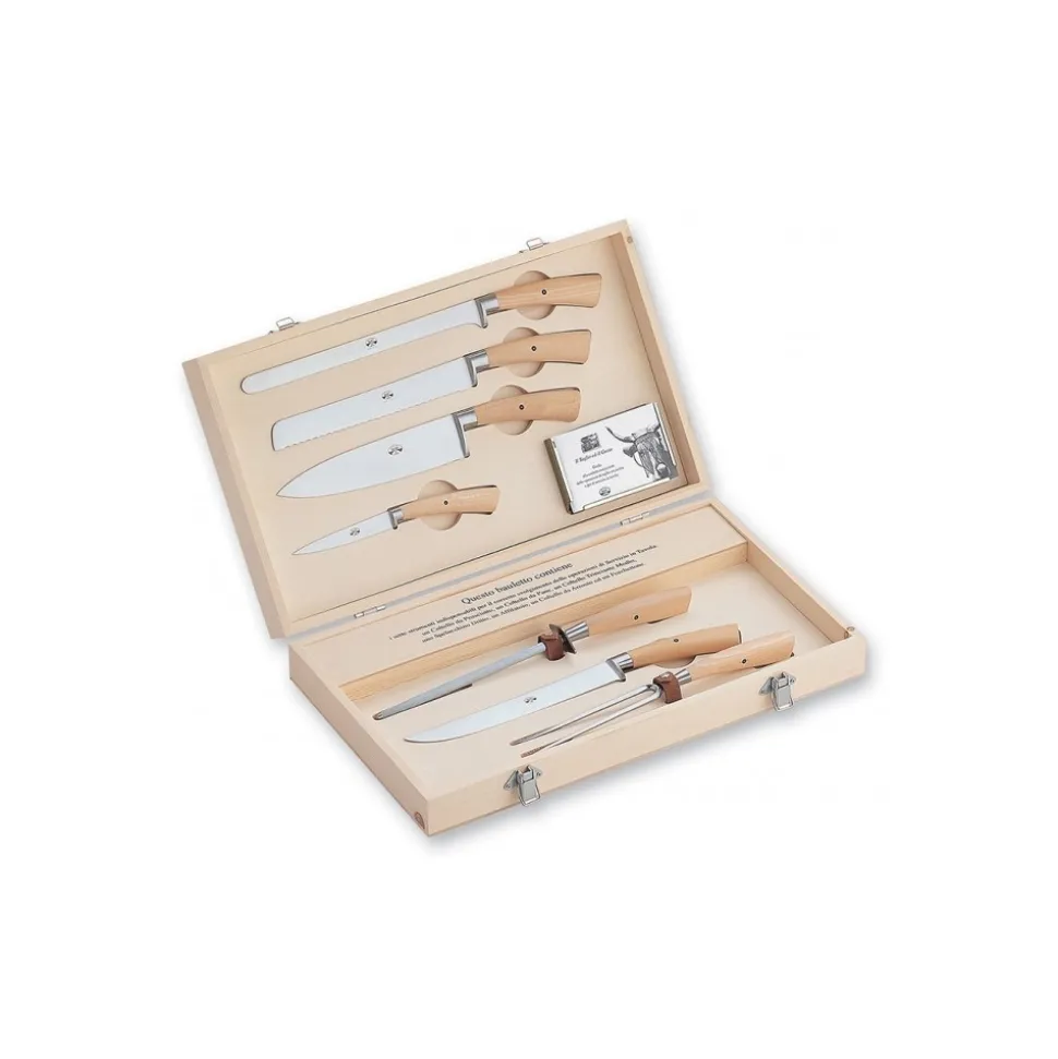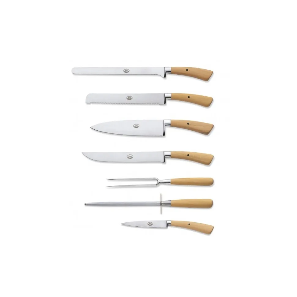 Exclusive Berti 1895 Cutlery Set. Service set, boxwood, forged blade. Full handle, cream.