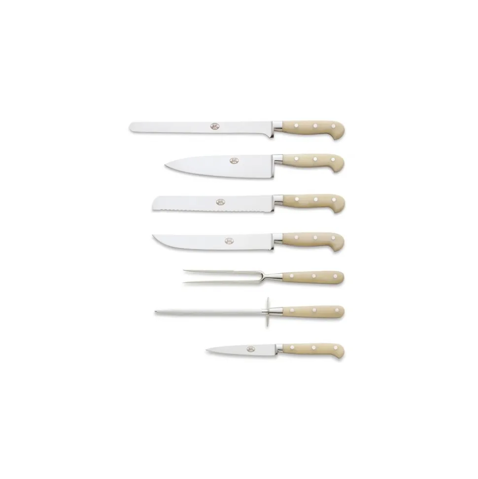 Exclusive Berti 1895 cutlery set. Service set, plexiglass, forged blade. Whole tang, cream.