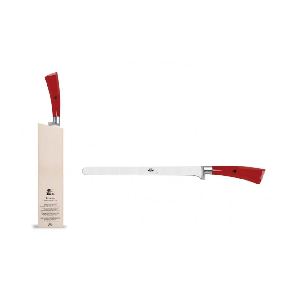 Exclusive Berti 1895 Knives set. Salami knives, plexiglass, forged blade. Full handle, red.