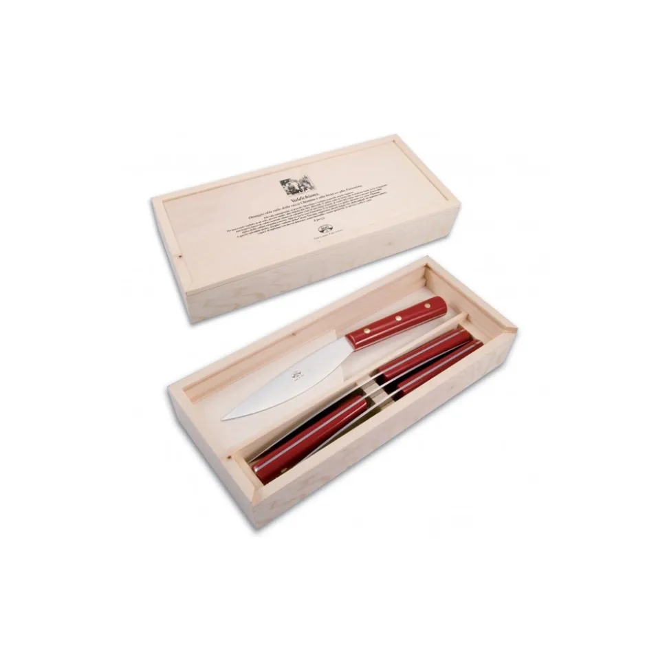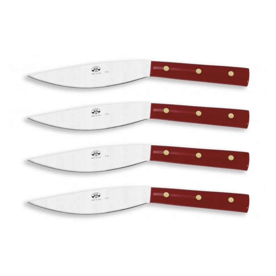 Exclusive Berti 1895 Cutlery set. Steak knives, plexiglass, laser cut blade. Whole tang, red.