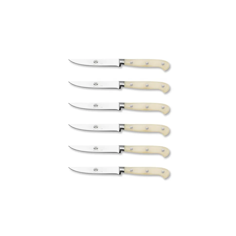 Exclusive Berti 1895 Cutlery set. Steak knives, plexiglass, forged blade. Whole tang, cream.