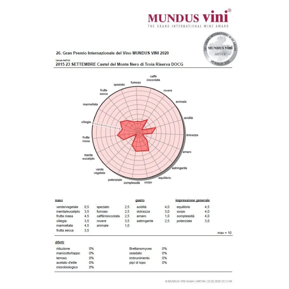 Produced with 100 % Nero di Troia small-berry grapes according to the personal interpretation of Count Spagnoletti Zeuli.