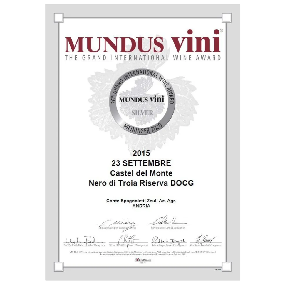 Conte Spagnoletti Zeuli – 23 September – Castel del Monte Nero di Troia Reserve D.O.C.G. – Red Wine – Reserve