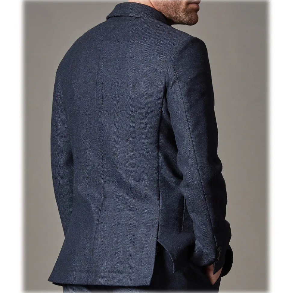 Cruna – Chelsea Jacket in Herringbone Wool – 478 – Royal Blue – Handmade in Italy – Luxury High Quality Jacket