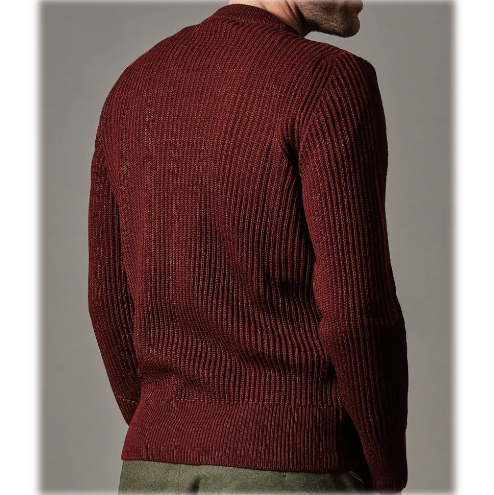 Cruna – Crewneck Sweater in Wool – 657 – Borgogna Red – Handmade in Italy – Luxury High Quality Sweater