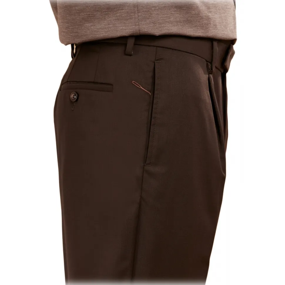 Tapered fit trousers with front pinces in stretch virgin wool twill
