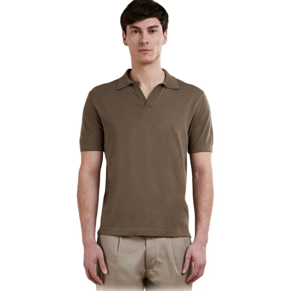 Knitted short sleeved buttonless polo shirt in 100% cotton 14 gauge