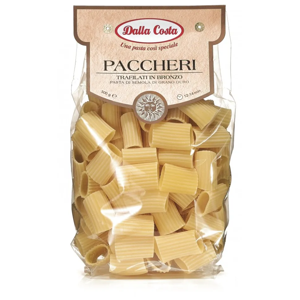 The good Giants. When a special durum wheat flour turns into a large shape pasta the result becomes a big Italian dish. Unique Pasta of giant dimension that is able to emanate the true Italian flavors. Special is the emotional impact that you see in the dish upon cooking, since the large shape keeps a good consistency and better absorb the sauce thanks to the roughness of the surface. Made according to the rules of the traditional Italian pasta, it is strictly bronze drawn and dried at low temperature.