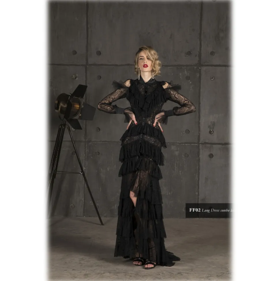 Danilo Forestieri – Long Chemisier Dress in Lace and Tulle – Black – Dress – Haute Couture Made in Italy – Luxury Exclusive Collection